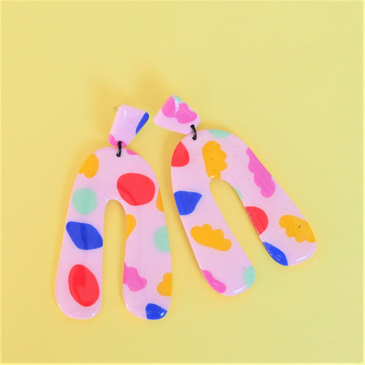 Boucles d'oreilles Solveig en argile polymère - Arch rose & confettis | Collection Permanente
