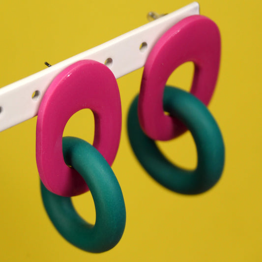 Boucles d'oreilles Lauriette - géométrique vert & rose | Collection Permanente