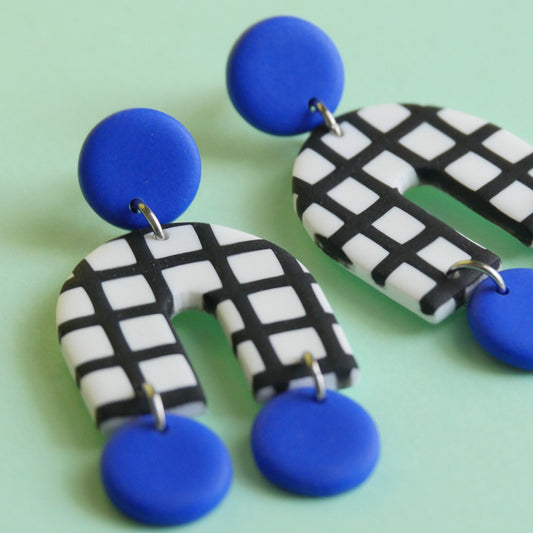 Boucles d'oreilles Arch carreaux et pastille bleu | Collection Permanente