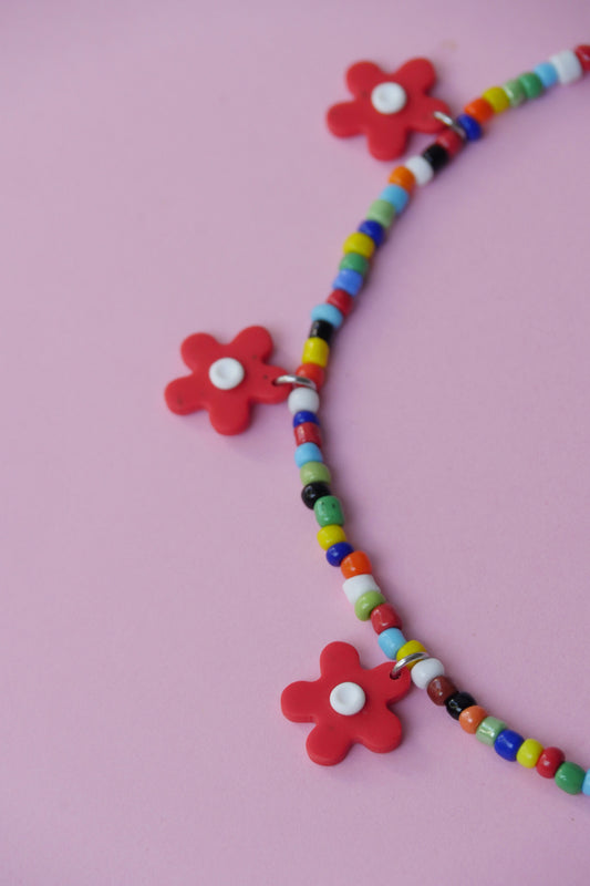 Collier en perles & argile polymère - multicolore à fleur rouge | Accessoires