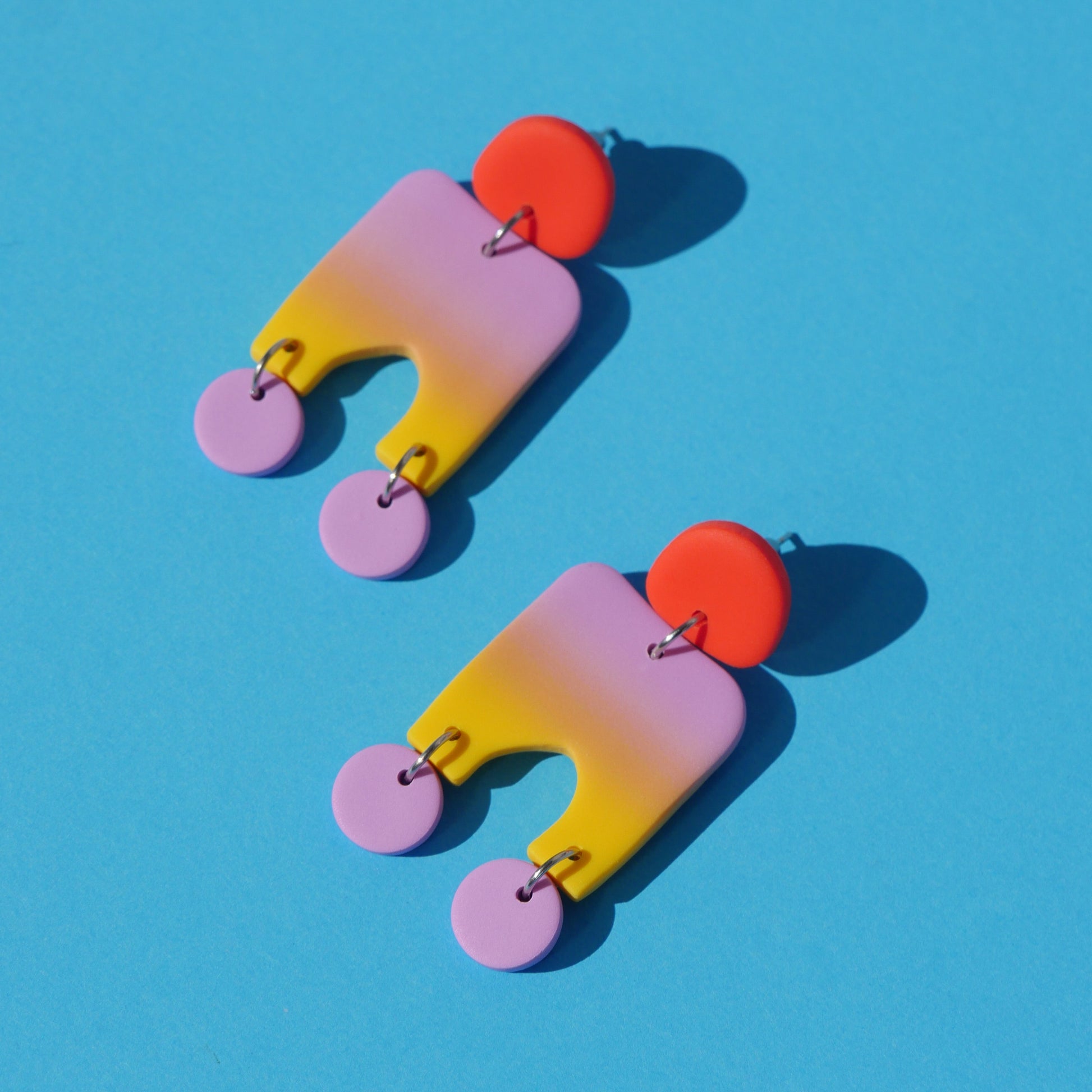 Boucles d'oreilles arch argile polymère - Coucher de soleil | Collection Millie