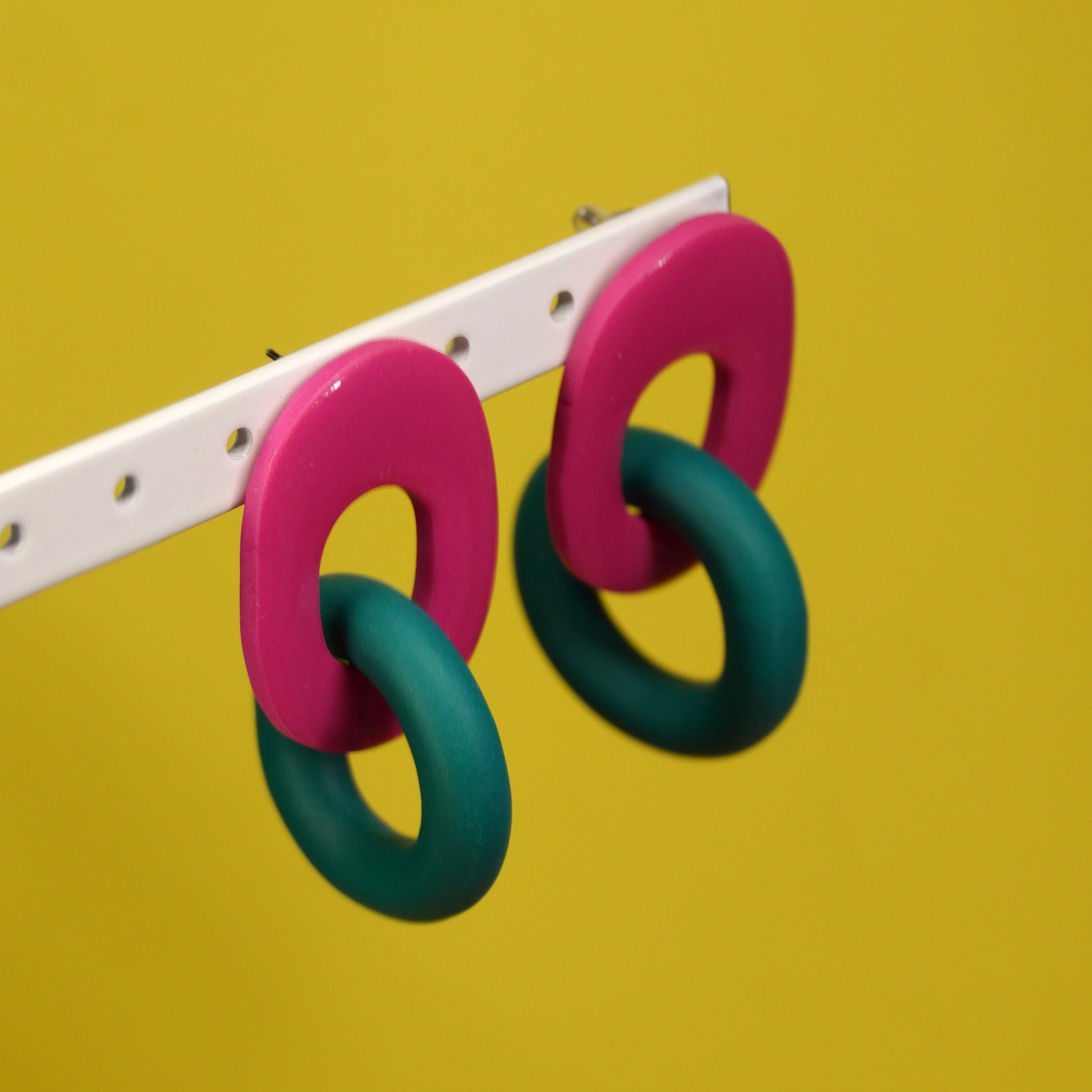 Boucles d'oreilles Lauriette - géométrique vert & rose | Collection Permanente