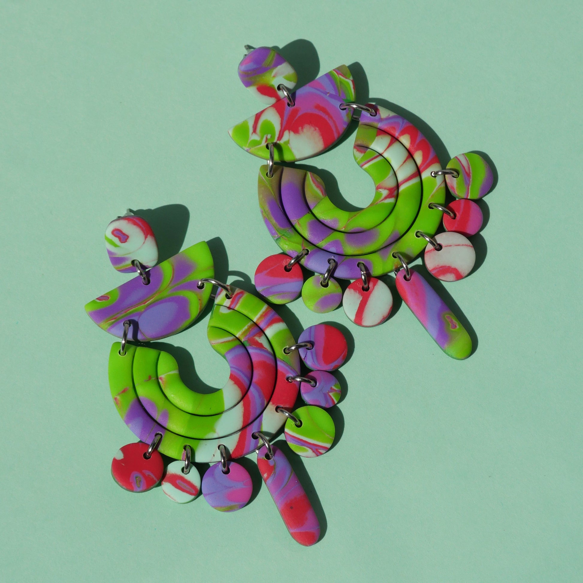 Boucles d'oreilles en argile polymère façonnées avec soin à la main, à Montréal.