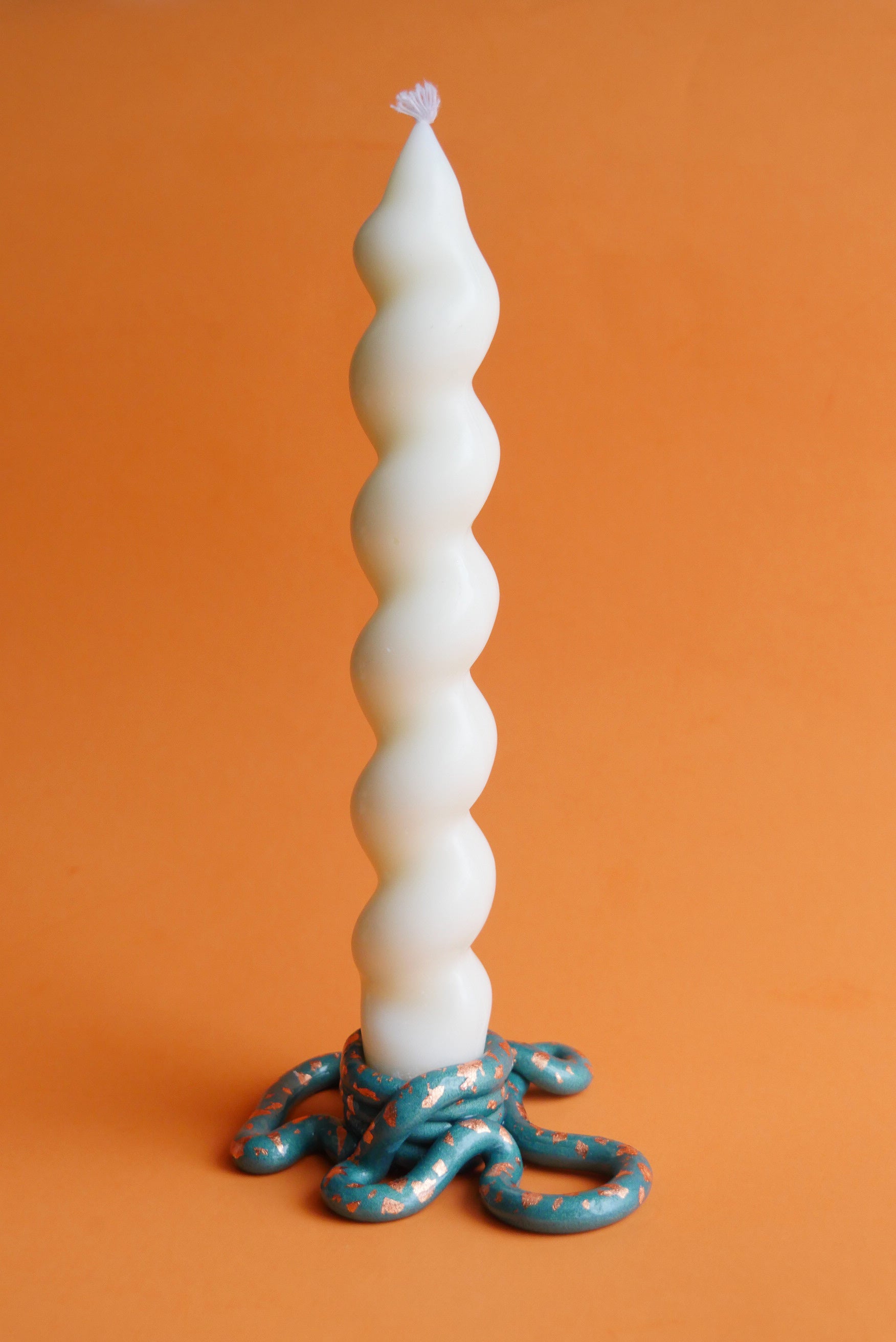 Duo de chandelle spirale et bougeoir, le cadeau idéal à offrir à vos proches pour ajouter une ambiance chaleureuse et de la couleur à leur intérieur ! Coffret exclusif et fait main.