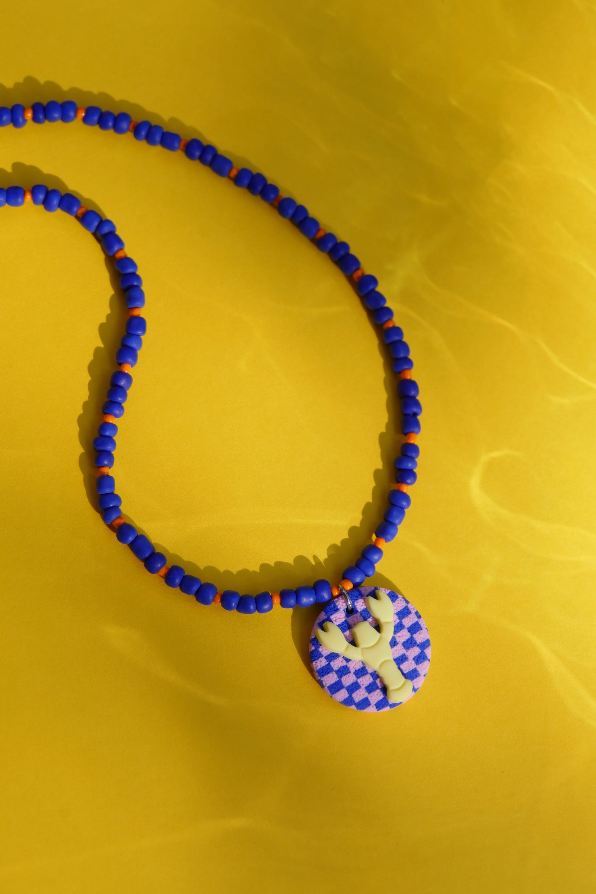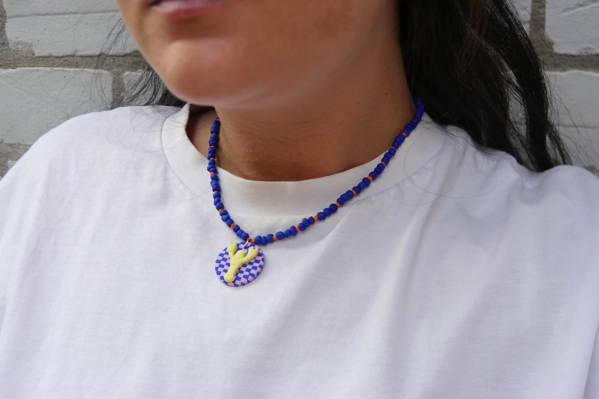 - Matériaux : argile polymère, anneaux & fermoirs en acier inoxydable, perles.