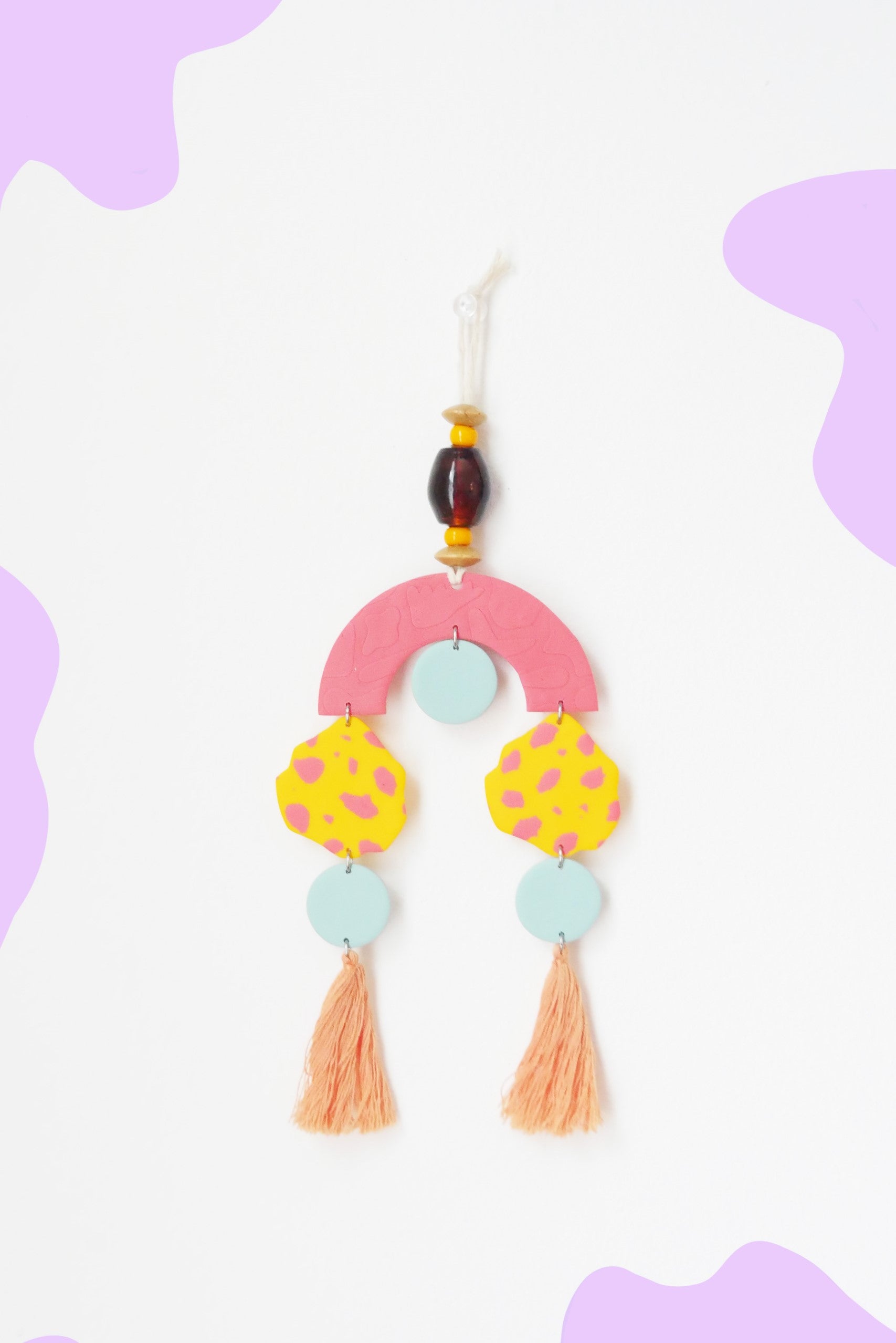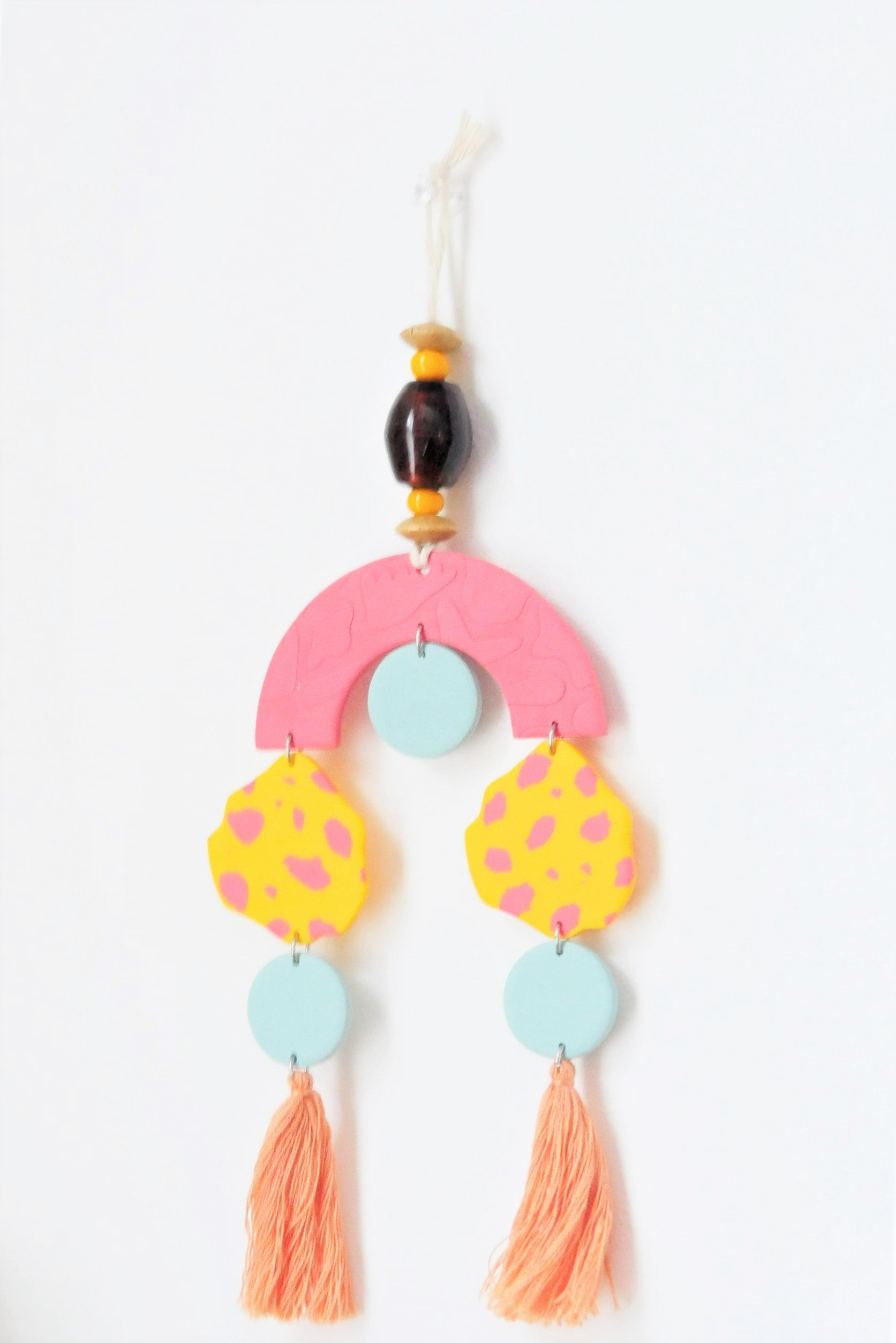 Décoration murale arche & pompons en argile polymère fabriquées à la main !