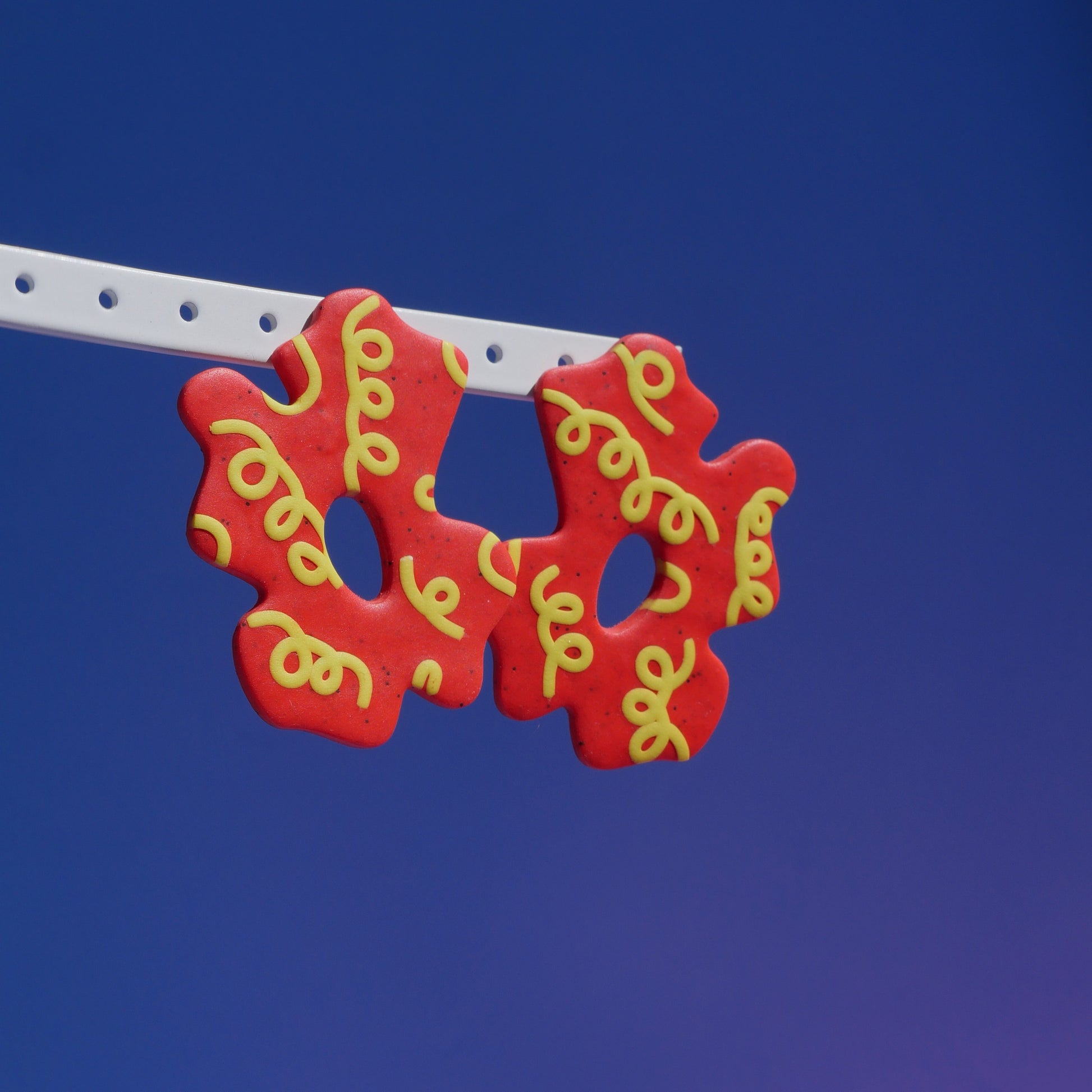 Boucles d'oreilles en argile polymère façonnées avec soin à la main, dans mon atelier à Montréal.