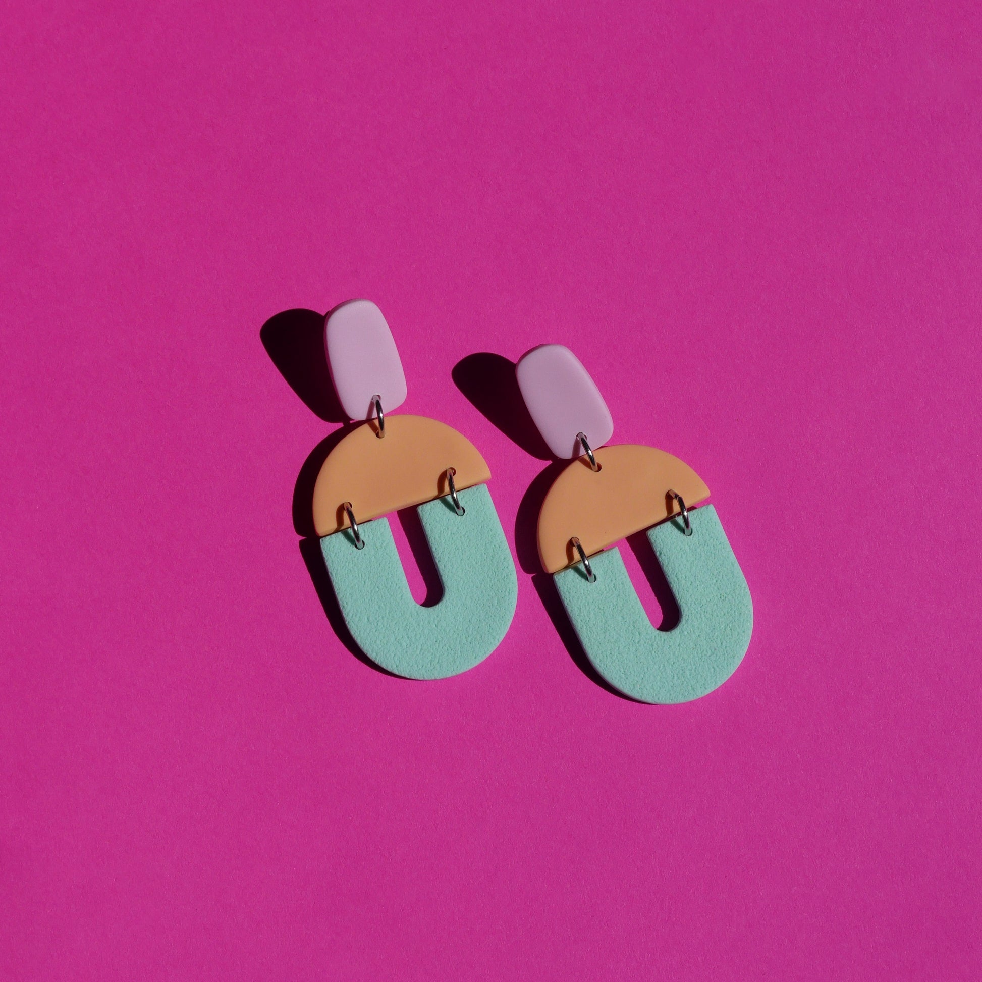 Boucles d'oreilles en argile polymère façonnées avec soin à la main, dans mon atelier à Montréal.