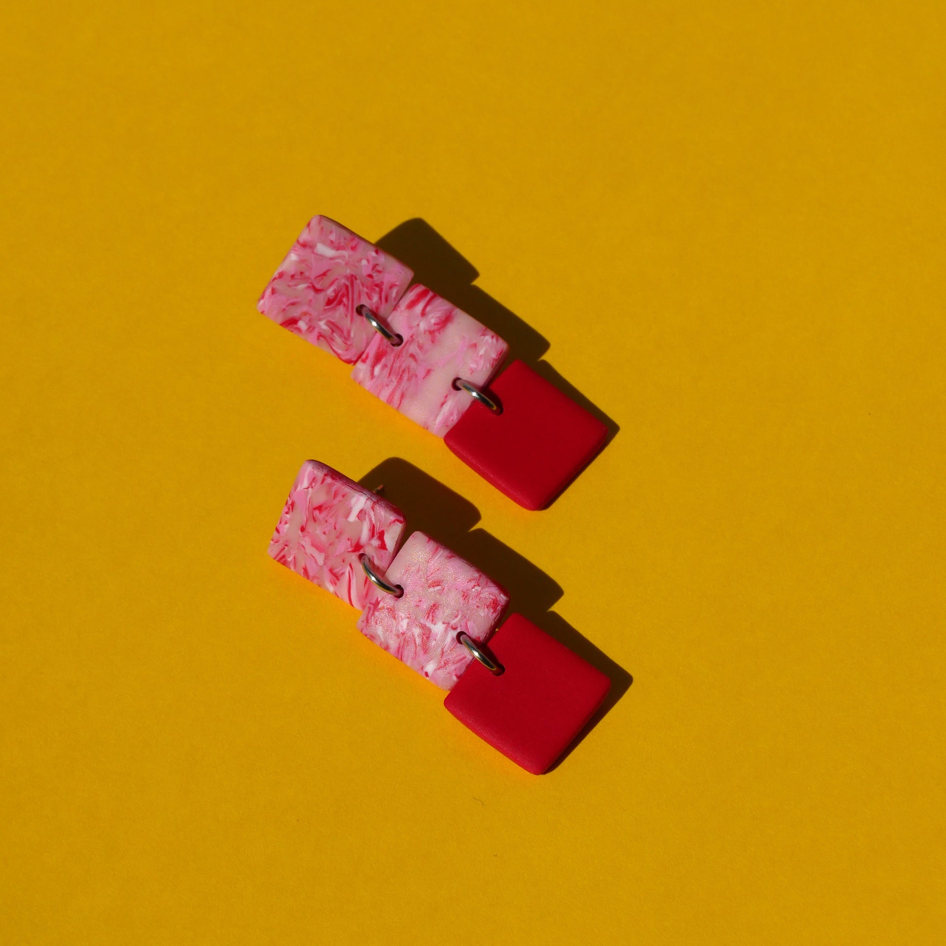Boucles d'oreilles en argile polymère façonnées avec soin à la main, dans mon atelier à Montréal.