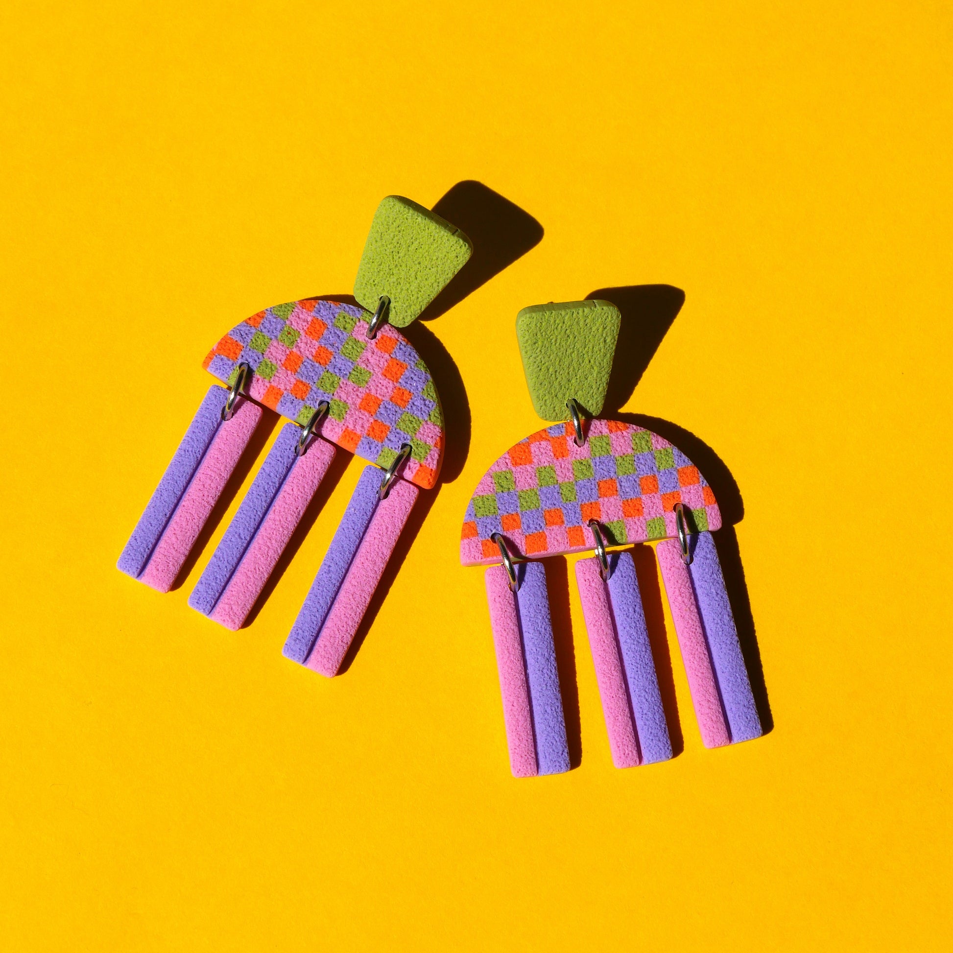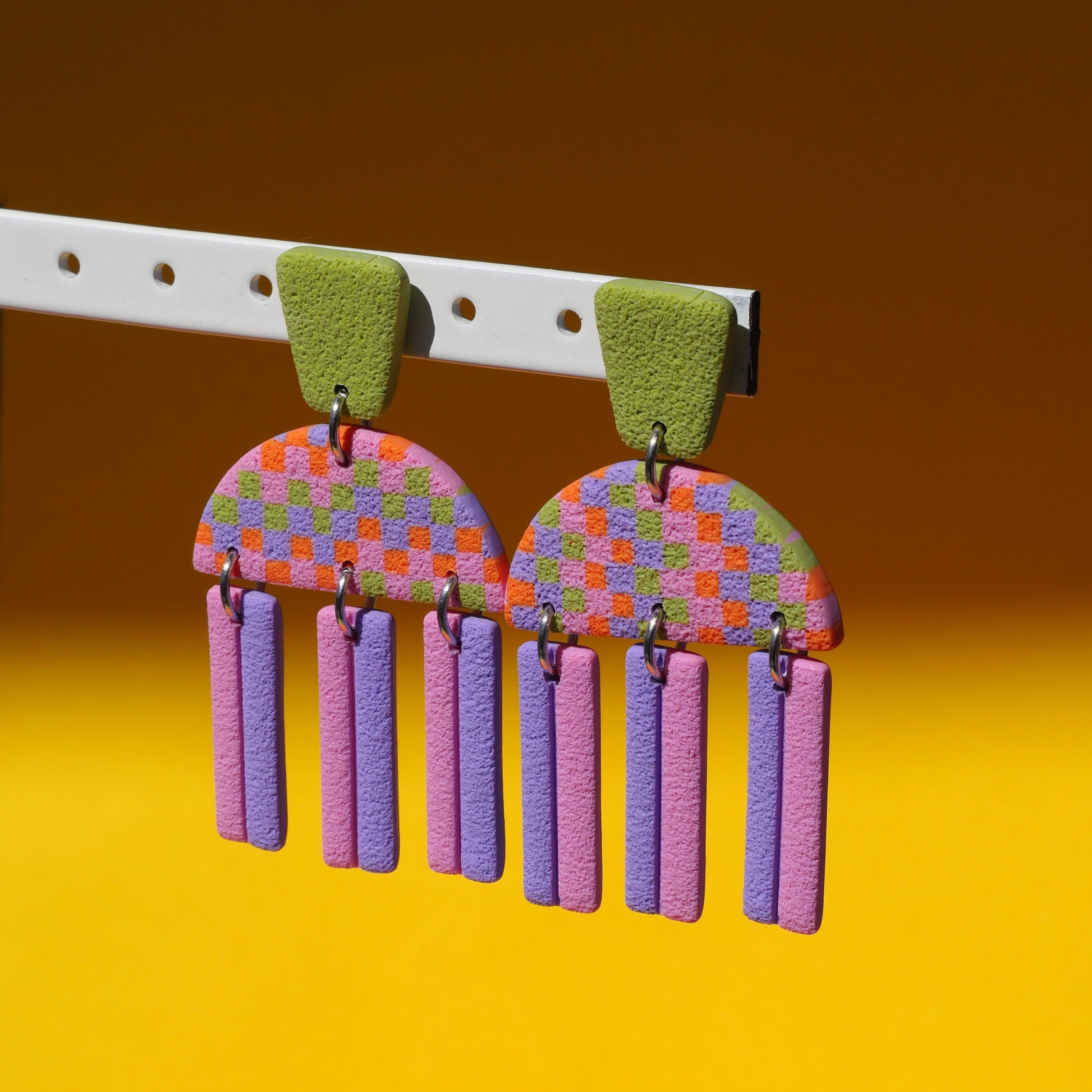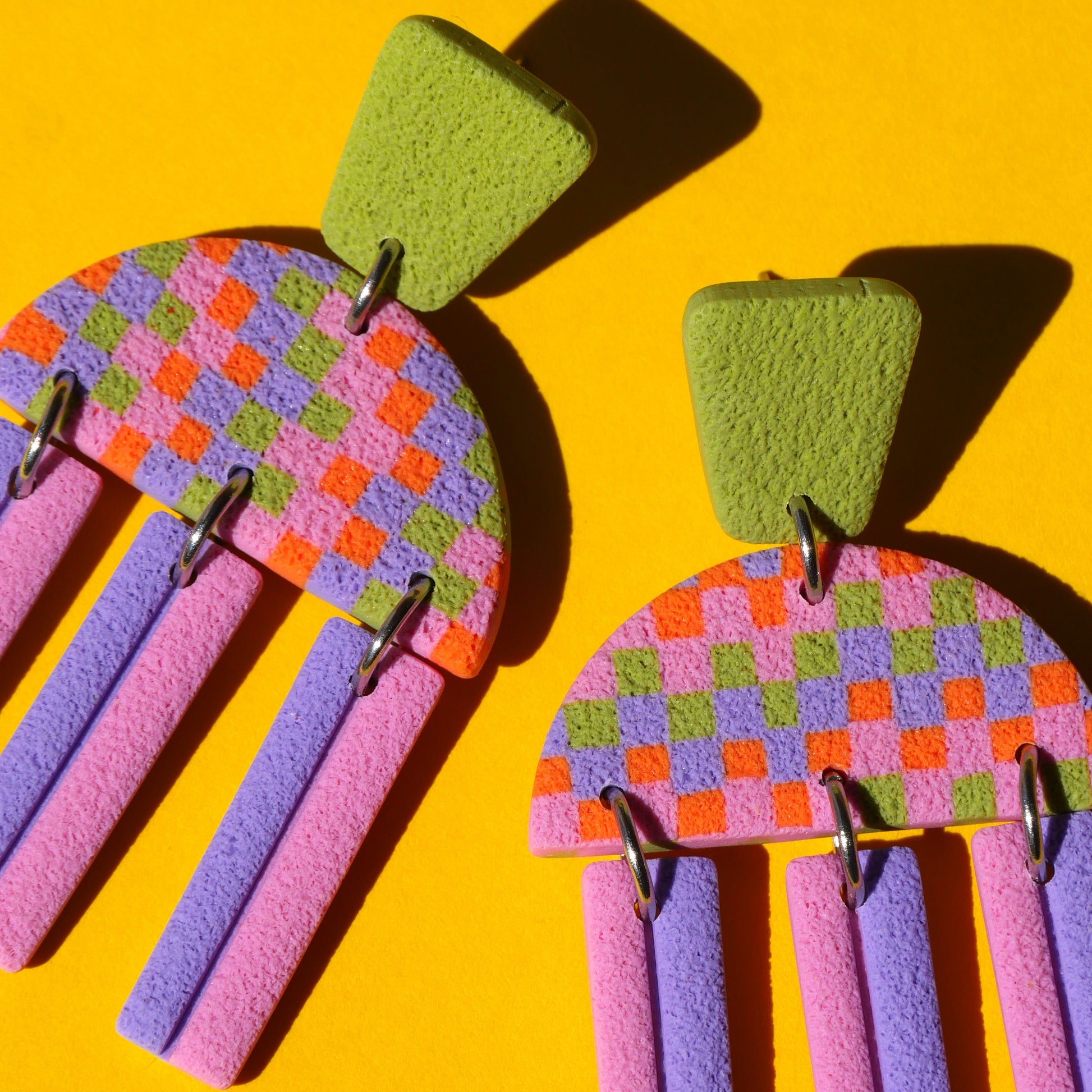 Boucles d'oreilles en argile polymère façonnées avec soin à la main, dans mon atelier à Montréal.