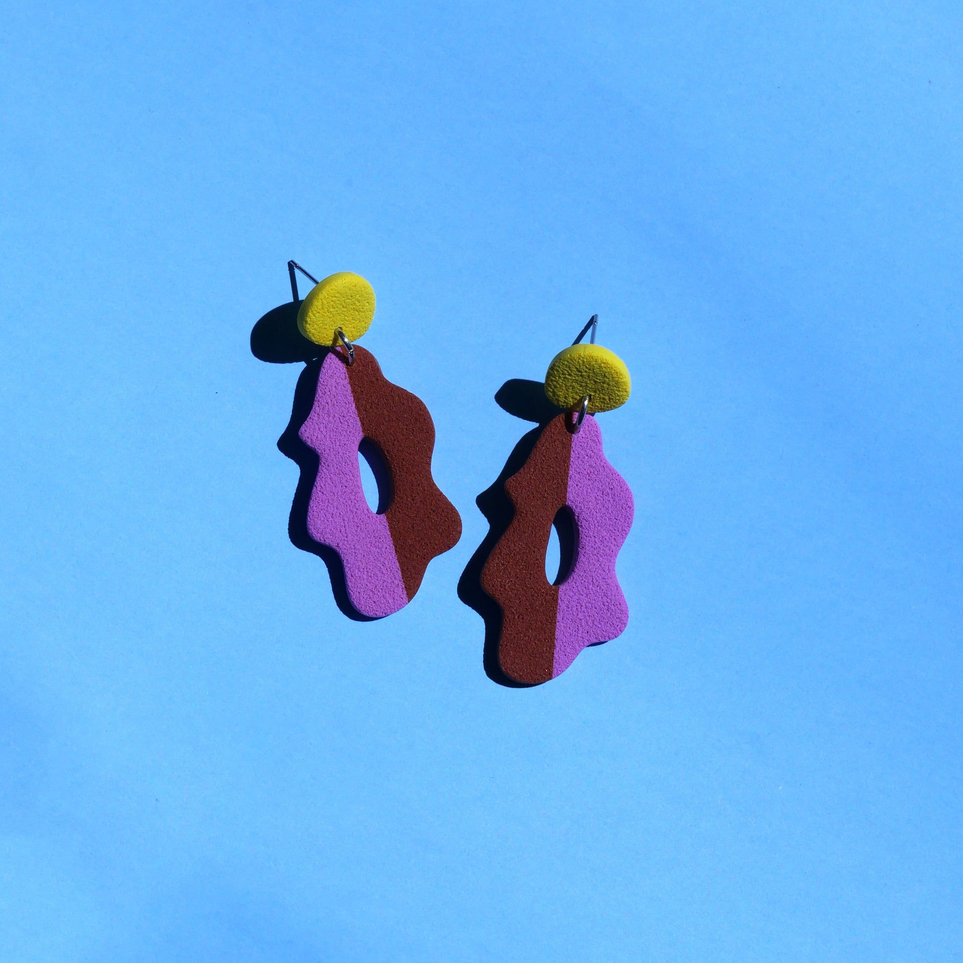 Boucles d'oreilles en argile polymère façonnées avec soin à la main, dans mon atelier à Montréal.