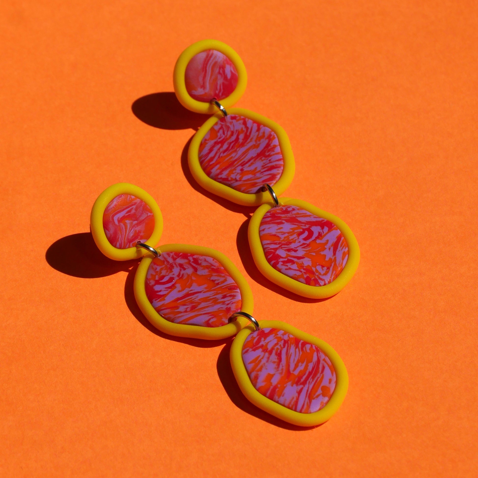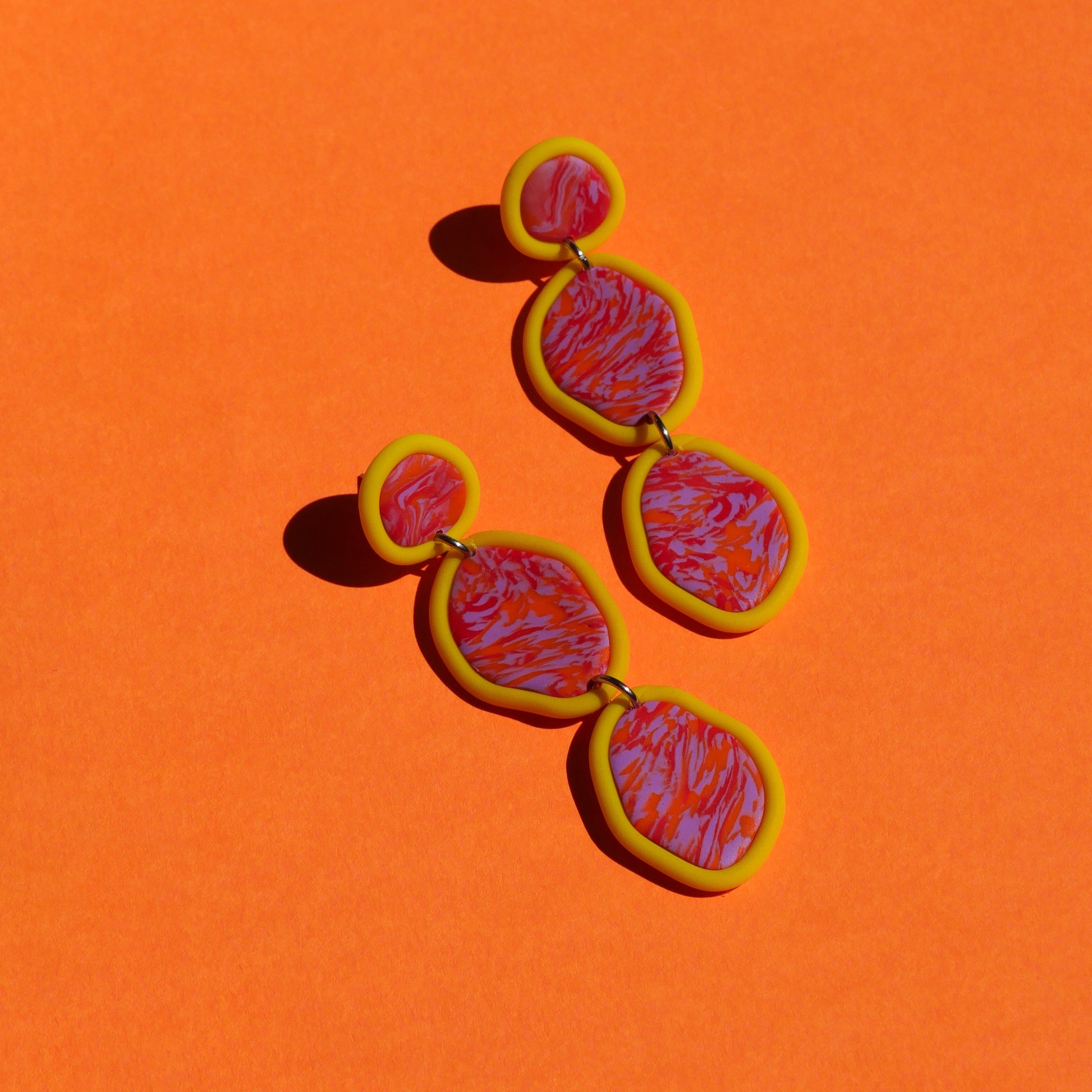 Boucles d'oreilles en argile polymère façonnées avec soin à la main, dans mon atelier à Montréal.