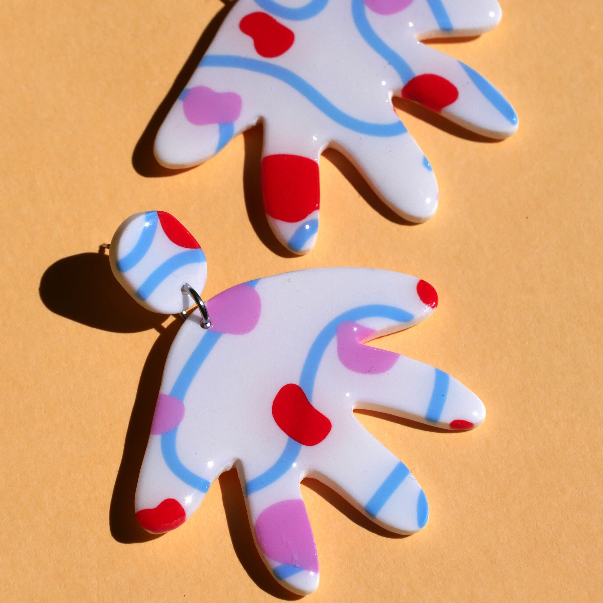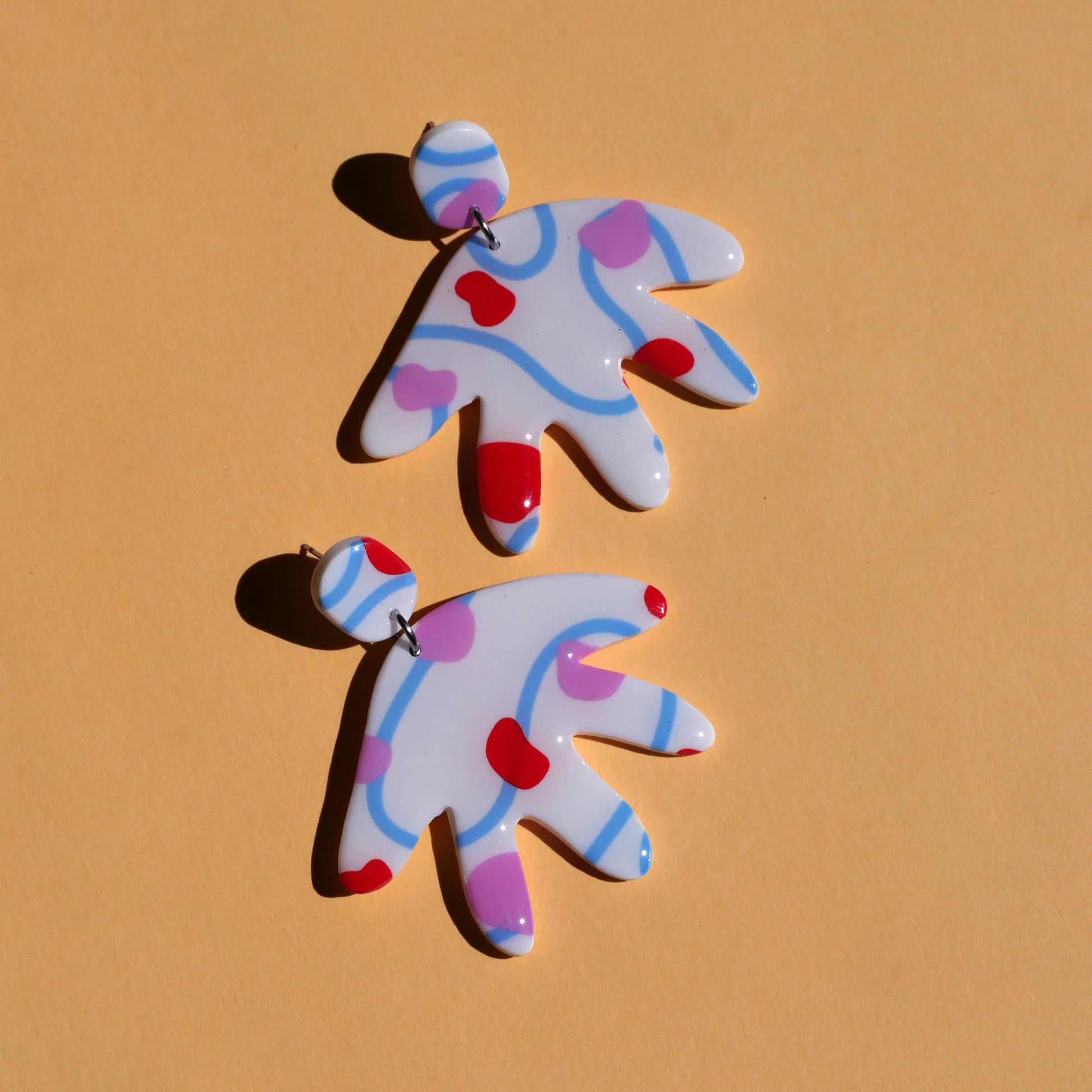 Boucles d'oreilles en argile polymère façonnées avec soin à la main, dans mon atelier à Montréal.