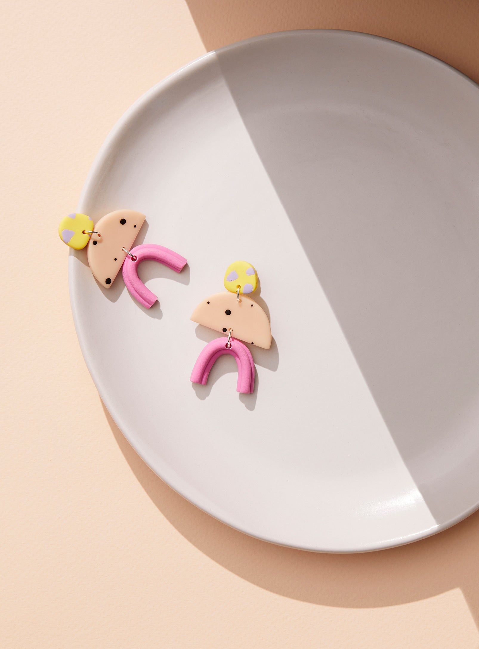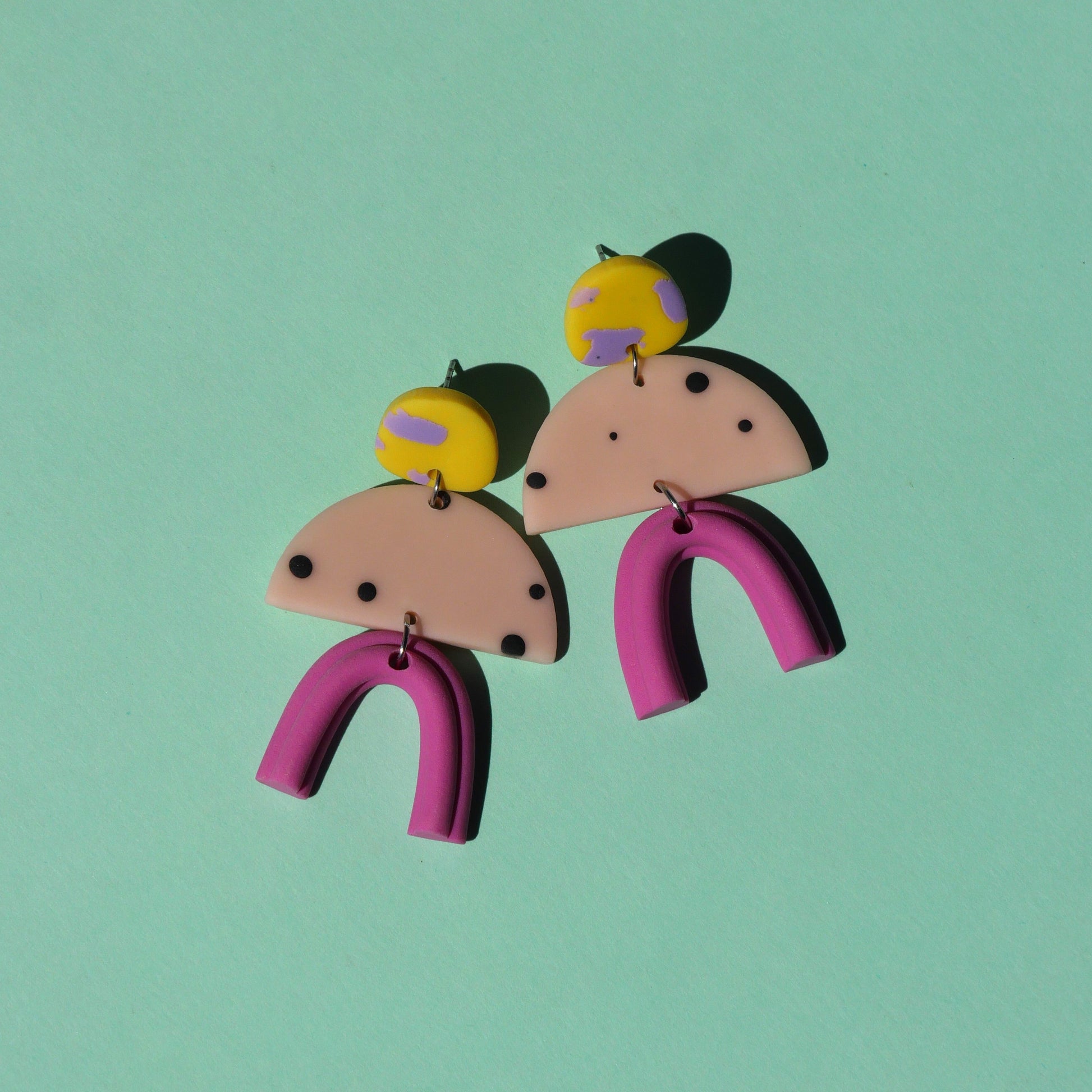 Boucles d'oreilles en argile polymère façonnées avec soin à la main, dans mon atelier à Montréal.