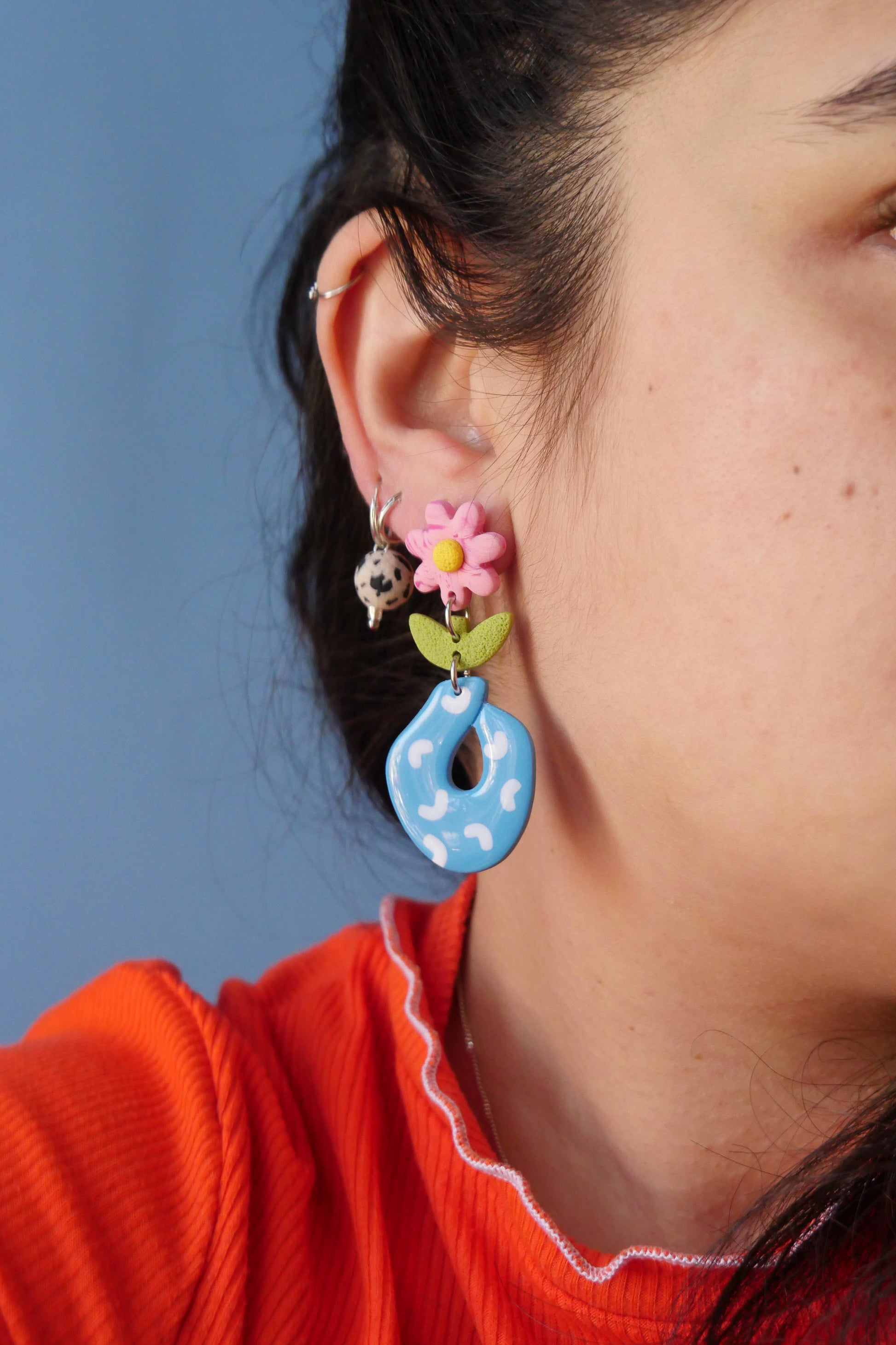 Boucles d'oreilles en argile polymère façonnées avec soin à la main, dans mon atelier à Montréal.